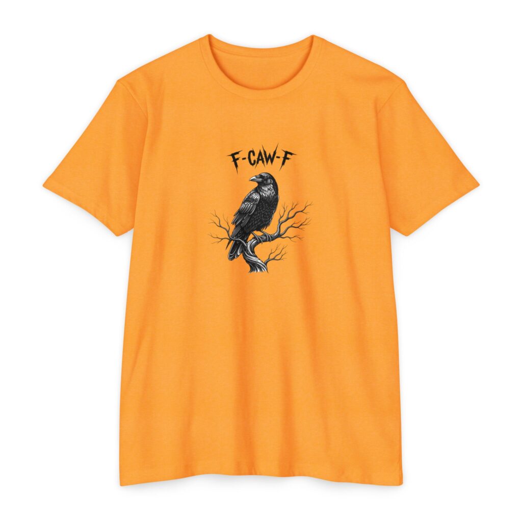 F-Caw-F Raven Unisex T-Shirt Ribbed Collar Cotton Blend Lightweight Fabric – Vibrant Orange Graphic Tee | 4.3 oz 60/40 Cotton-Poly | Classic Fit Super-Soft Raven Statement Tee